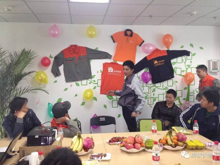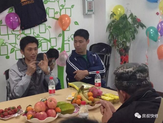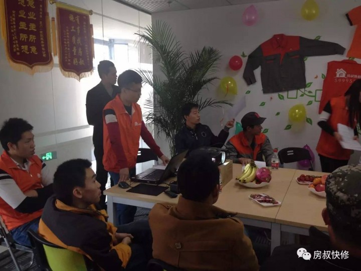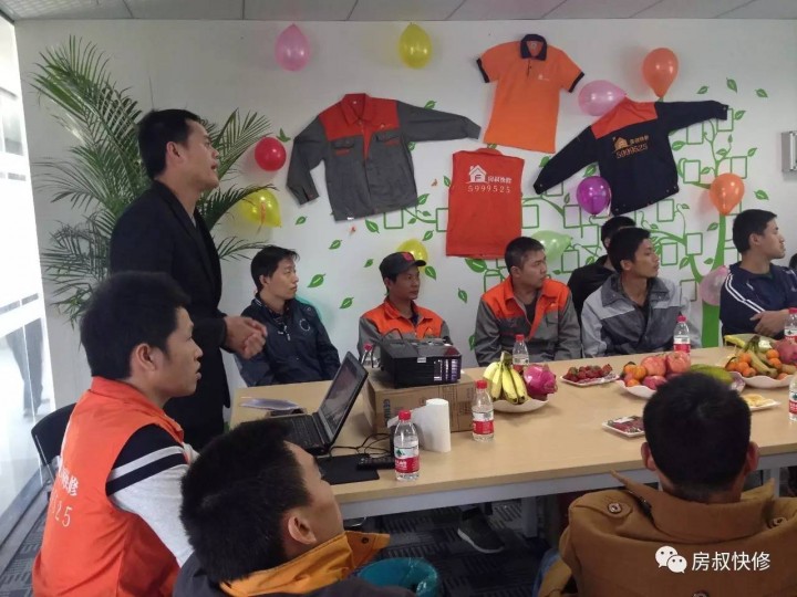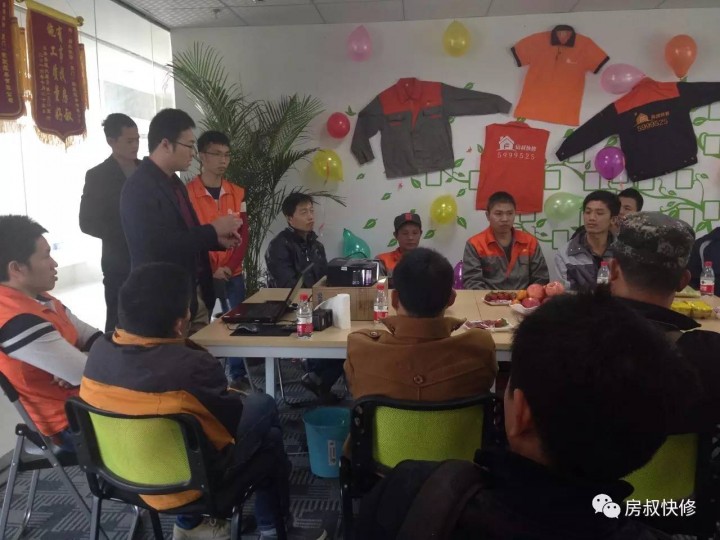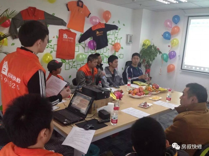 房叔快修邹经理发言致辞,欢迎各位师傅的光临,同时也感谢各位师傅在这一年中和房叔快修一道努力将打造房叔的服务,提高客户的满意度作为自己的重要工作坚持下来。邹经理在发言中也透露了接下来两个月内的战略规划,师傅们也纷纷提出了自己的看法,共同商讨决议了下一步的方向和目标。