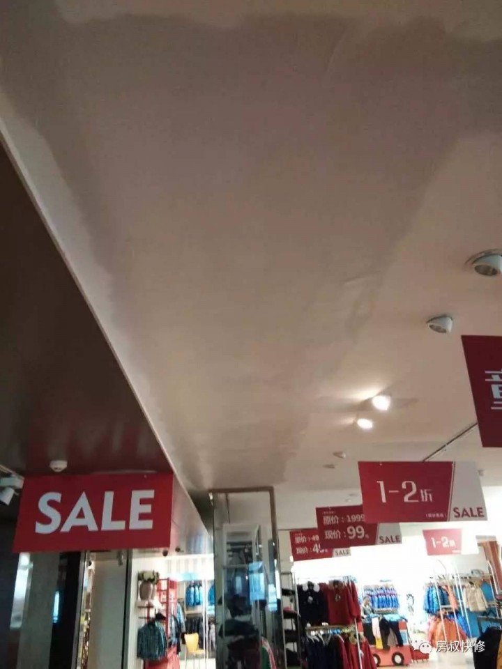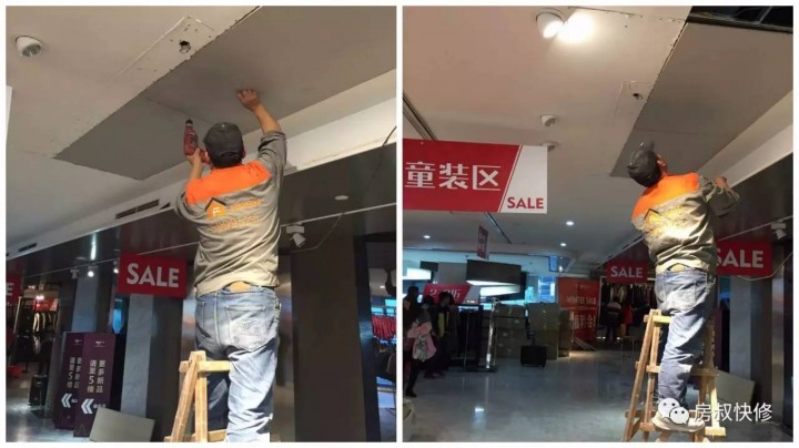师傅在修补卖场的吊顶
