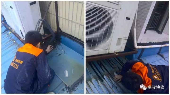 客户报修说房顶漏水,师傅在屋顶做防水