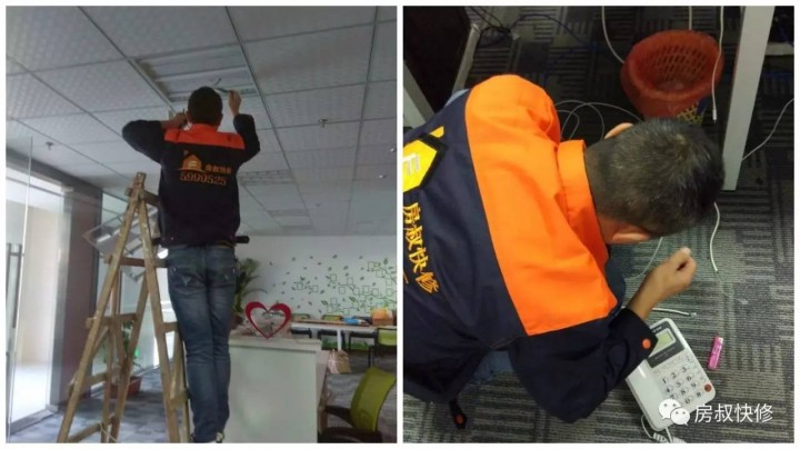 办公室的日光灯坏了,还有电话线需要重新接,师傅上门帮忙维修