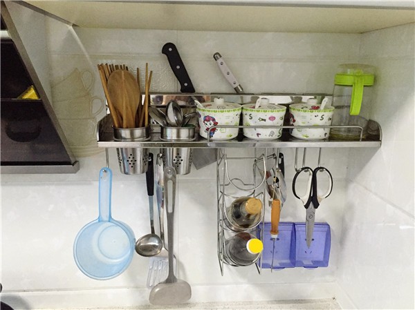厨房中的各种菜刀或水果刀不应悬挂在墙上,或插在刀架上,应该放入抽屉收好;厨房内也不应悬挂蒜头、洋葱、辣椒,因为这些东西会吸收阴气。
