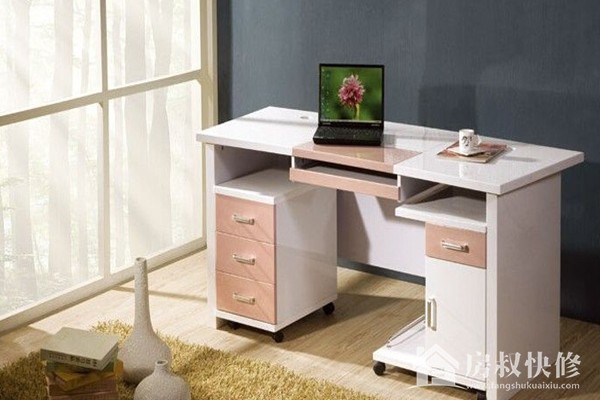 2、电脑桌用料考究,设计新颖,布局合理。电脑桌的设计很重要:桌面高度,键盘桌面等,都要设计合理,符合工作习惯和身体健康的需要。