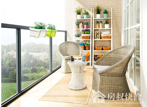 众所周知,开放式的实用性更强,比方说图中的这款,将几簇盆栽钩挂在护栏上;既节省了地面空间,同时又装饰了原本空落的栏杆,再放上用藤条编织的桌子和凳子,坐在这里欣赏风景,别有一番风趣。