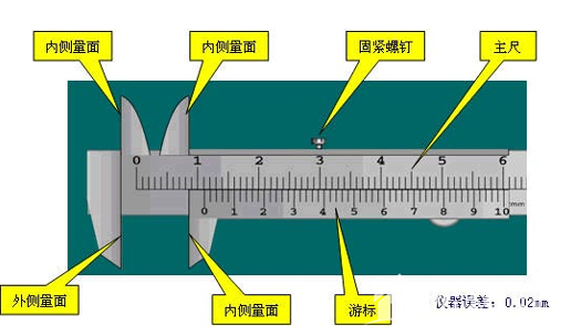 用途:测量长度、内外径、深度,是一种被广泛使用的高精度测量工具,由主尺和附在主尺上能滑动的游标两部分构成。