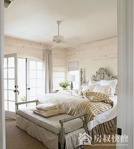 田园的风格,使自己像平躺在大自然中,这个复古的吊扇更多的是一种装饰,但也具有使用性。褐色的床饰与地毯,給卧室温馨感,业具有稳重的气质,给睡眠有力的保障。欧式古典的床,让自己更像皇室的贵族。