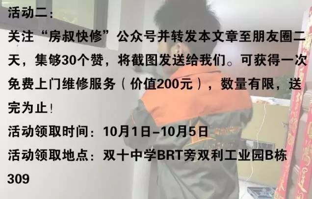 房叔快修定于10月1日-5日国庆大放送,凡是转发本链接就有豪礼相送!(数量有限,送完为止)
