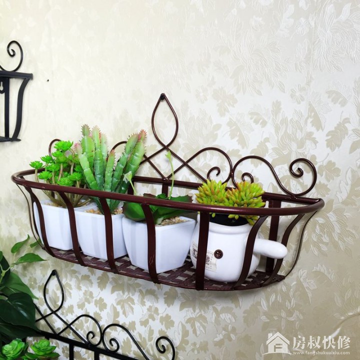 这样的铁艺壁挂式花架,适合室内任何墙壁,只要在墙壁上钉上钉子即可悬挂。这个花架带着一些复古意味,简单的曲线线条勾勒出一些华美与优雅,棕红色的漆面带着一丝复古的意味,摆放几个白瓷花盆,种上胖嘟嘟的多肉植物,鲜明的反差萌让人挪不开眼!