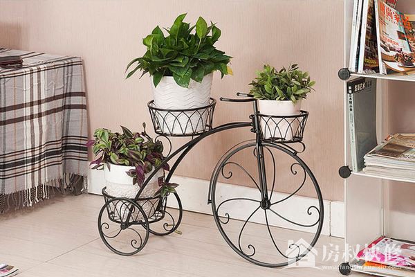 这样的自行车形状的铁艺花架如今也非常流行,设计者巧妙的在车座、车后座以及车篮出各设计三个“坑”位,刚刚还可以摆上三盆盆栽。而自行车的形状也很独特,让人感到十足的趣味。市面上这样造型的花架有大有小,大家可以根据自身的需要,选择适宜的大小,无论放在桌子上还是立在地上都很不错!
