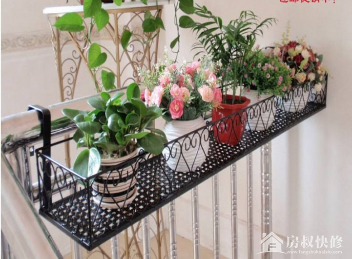 这样的栏杆花架非常适合阳台,既不占空间,又能在阳台上种上几盆花草。花架悬挂起来也非常方便,只要将花架后面的钩子挂在栏杆上即可。你家如果是复式,室内有楼梯,还可以挂在楼梯栏杆上!