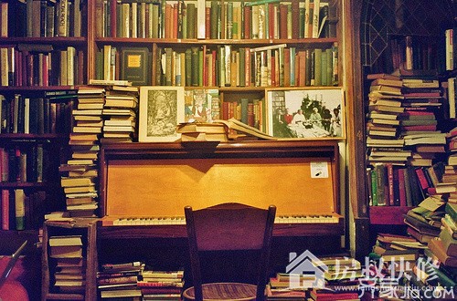 显然这间书房已经容不下多出来的成堆书本了,可是,仅仅是把它们成摞堆在一起,还是有种充实感与满足感,坐在钢琴前弹奏一曲,让文字与音符跳一支交谊舞。