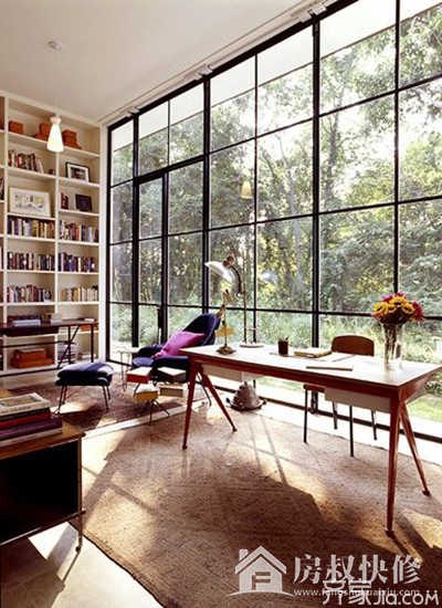 像这样光线好的书房真的令人向往,沐浴在阳光中融入书籍的世界是多么幸福的一件事。书房里最好有一个大大的落地窗,在阅读的时候,还能有美丽的风景相伴,心灵自由的感觉最是舒畅。
