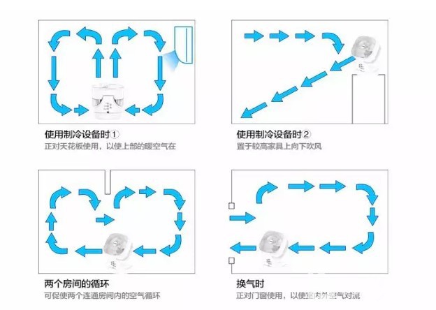 循环扇长的有点像我们常用的小风扇,它能将室内空气形成对流循环,以平衡室温,常用来配合空调,达到快速制冷。