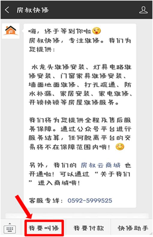 扫码关注公众号,操作上图进入跳转页面,就可报修您想要的服务。