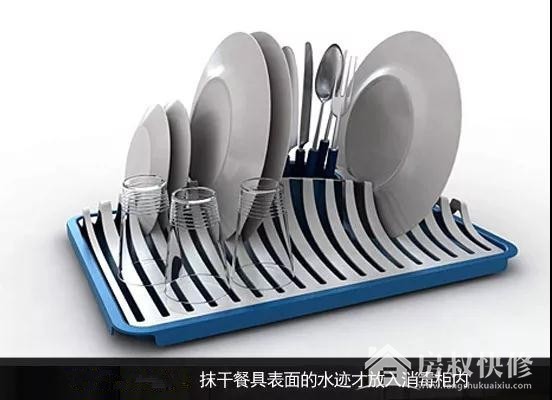 虽然餐具已经清洗干净,但也需要抹干表面的水汽才放入消毒柜内,防止餐具表面的水滴到消毒柜内,让消毒柜生锈,降低消毒柜的寿命。