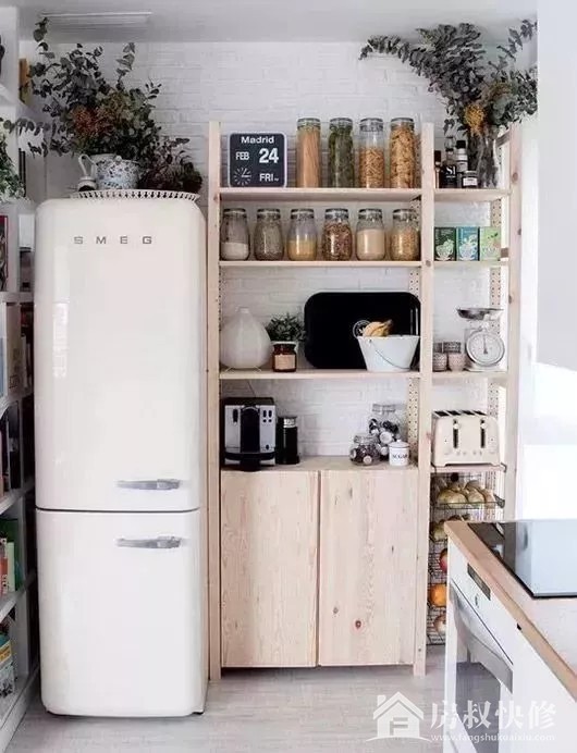 小常识(房叔快修小篇)建议:在冰箱顶部或周围不要摆放微波炉、电饭锅等带电磁感应的电器,可以选择摆放绿萝、吊兰等盆摘,这样既利用了空间,又能吸收厨房油烟,美化厨房。