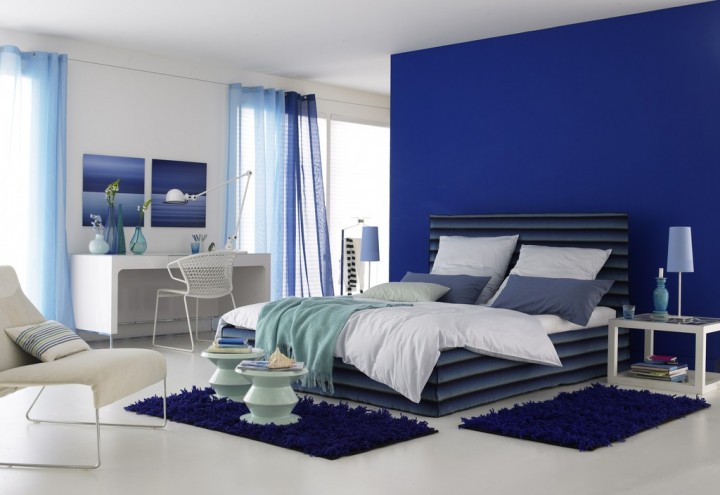 6、各种蓝色:蓝色还可以跟蓝色搭配,这就需要运用各种层次的蓝色了,深深浅浅的不一样的蓝色搭配起来的家居也别有一番意境。